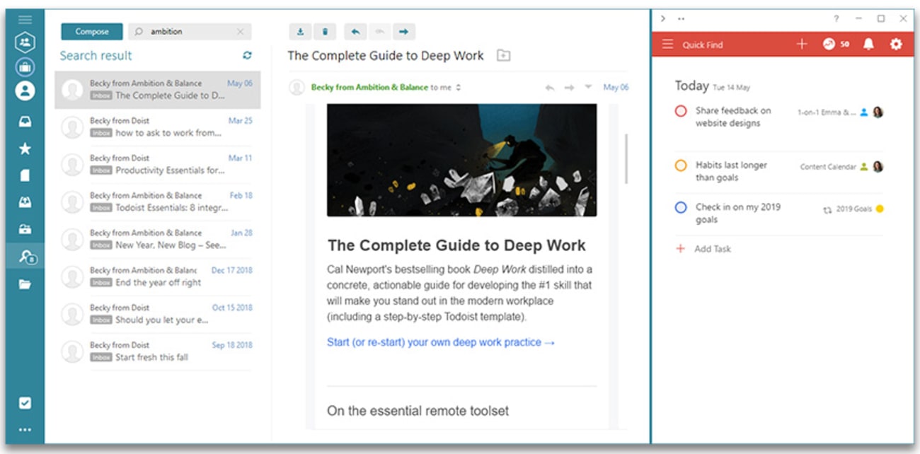 Díky této integraci uvidíte Todoist v aplikaci Mailbird a budete tak mít efektivnější přehled o všech důležitých úkolech a projektech.