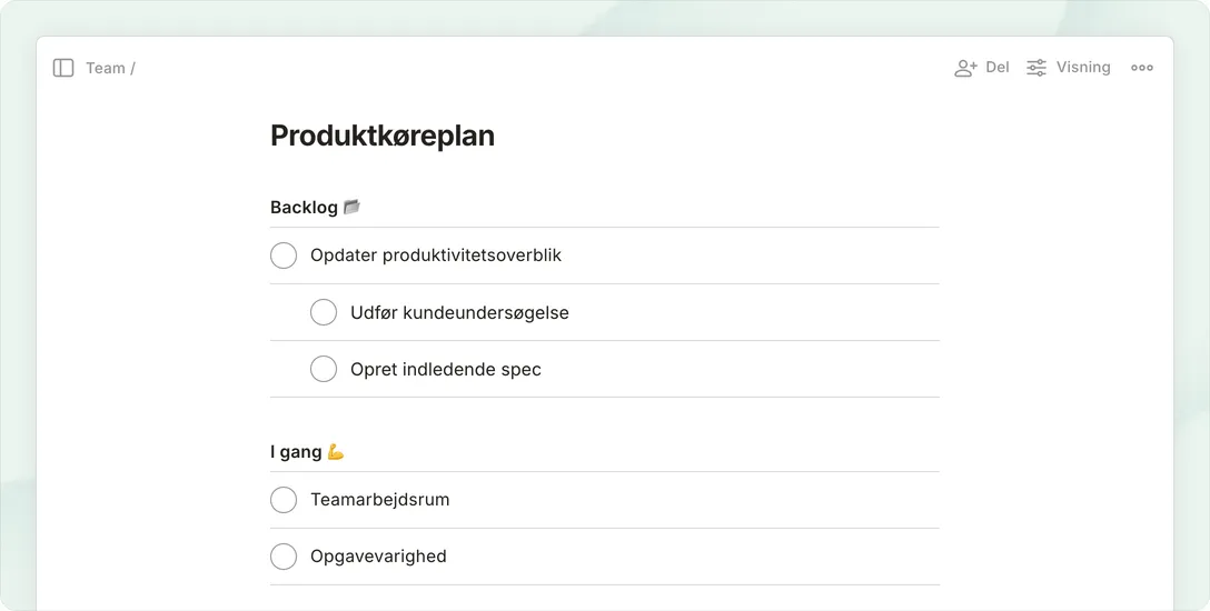 Et centralt og organiseret sted til at holde styr på hvert trin i dit teamprojekt.