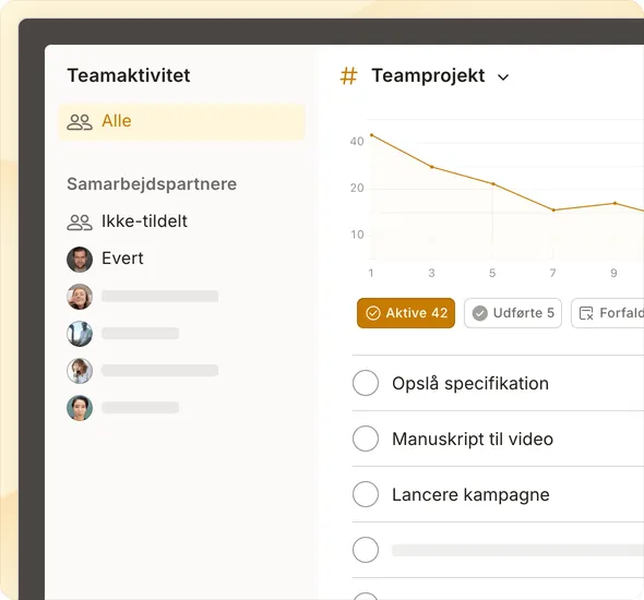 Hold styr på delte opgaver, projekter og deadlines. Perfekt til teams, der har bedre ting at lave end at gøre alt unødigt kompliceret.