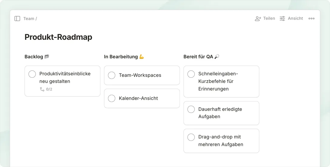 Ein zentraler, übersichtlicher Ort, an dem du jeden Schritt in deinem Teamprojekt verfolgen kannst.