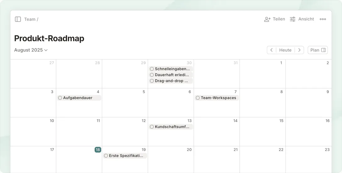 Wechsle zwischen Liste, Kalender oder Board, um selbst deine ehrgeizigsten Projekte einfach zu planen und zu verfolgen.