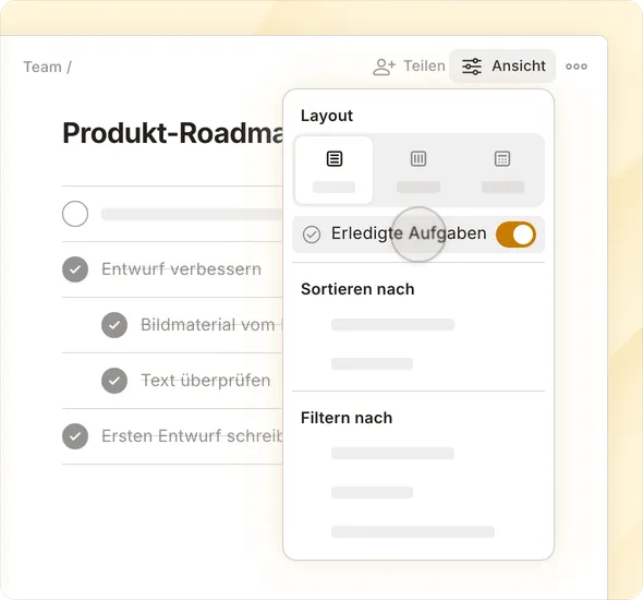 Unendlich flexible Ansichten zeigen dir genau die Aufgaben, die im Moment relevant sind. Heb dir den Rest für später auf.