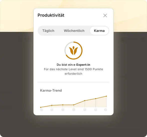 Große Leistung wird durch kleine, tägliche Schritte erzielt. Setze dir Tages- und Wochenziele und visualisiere deinen Produktivitätsverlauf.