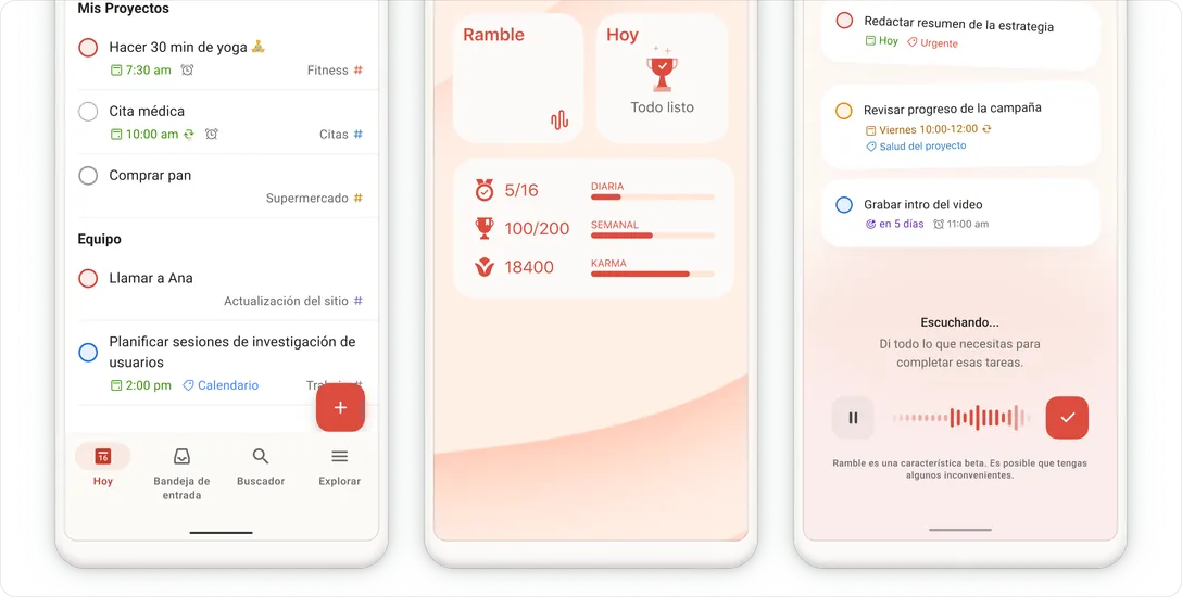 Descarga Todoist para Linux, Mac, Windows, iPhone, iPad, Android, Apple Watch y WearOS. Añade Todoist a tu navegador y a tu email también.