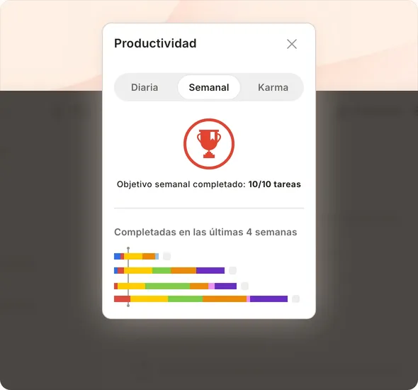 Completa tareas, gana impulso y acumula puntos para subir de nivel y acercarte a la maestría de Todoist.