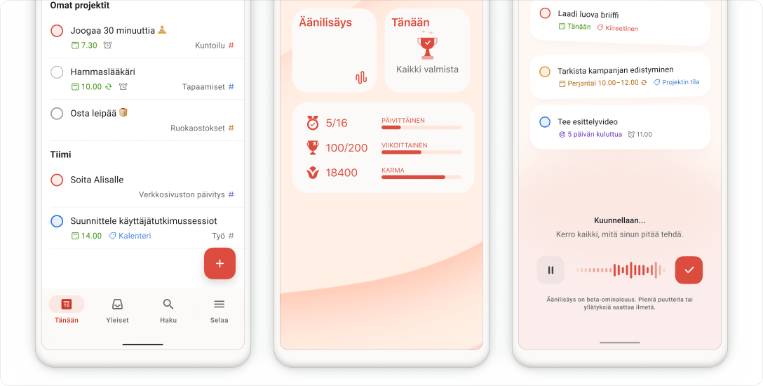 Käytämme evästeitä parantaaksemme sivustoamme ja Todoistin markkinointia. Valitse haluamasi asetus, niin muistamme valintasi.