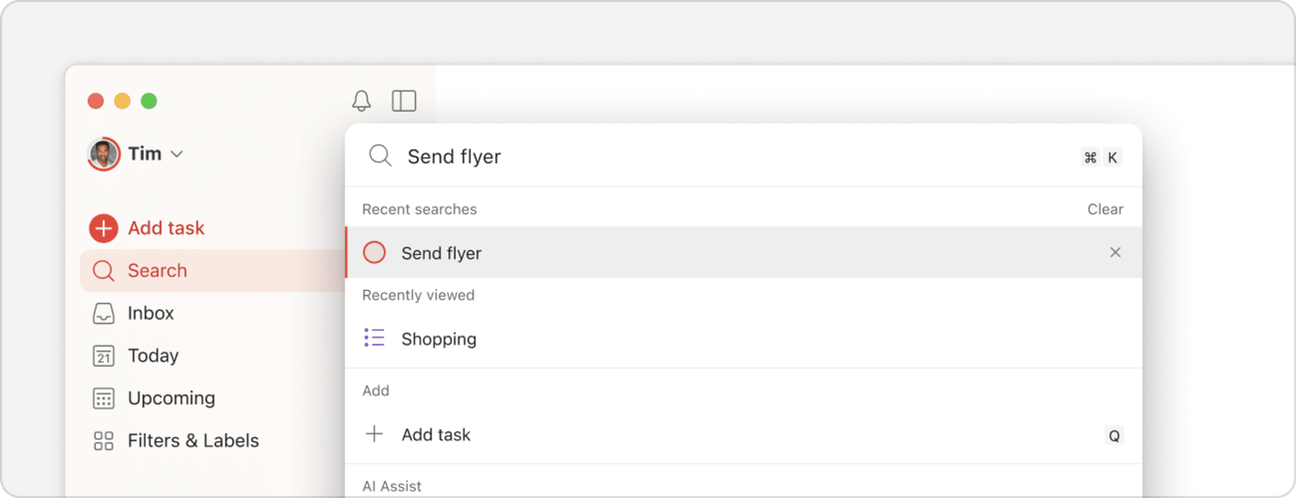 Komentovalikon avulla voit etsiä ja käyttää kaikkia näitä pikavalintoja. Ajattele sitä keskeisenä toimintakeskuksena Todoistissa, jonka avulla voit navigoida, lisätä ja muokata pelkästään näppäimistöllä.
