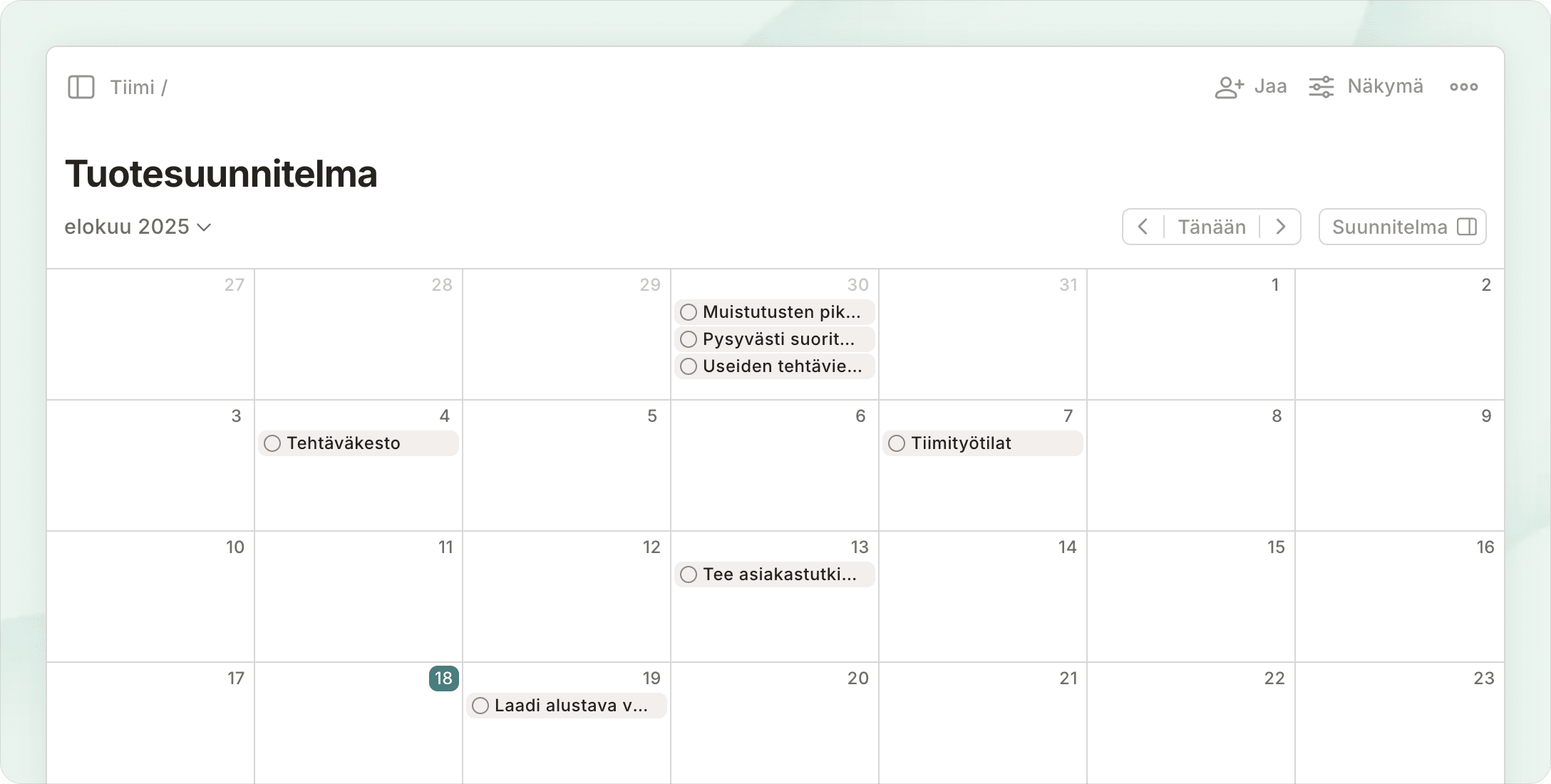 Ideoi tauluilla, suunnittele luetteloilla, aikatauluta kalenterissa. Kaikki vain muutamalla klikkauksella.