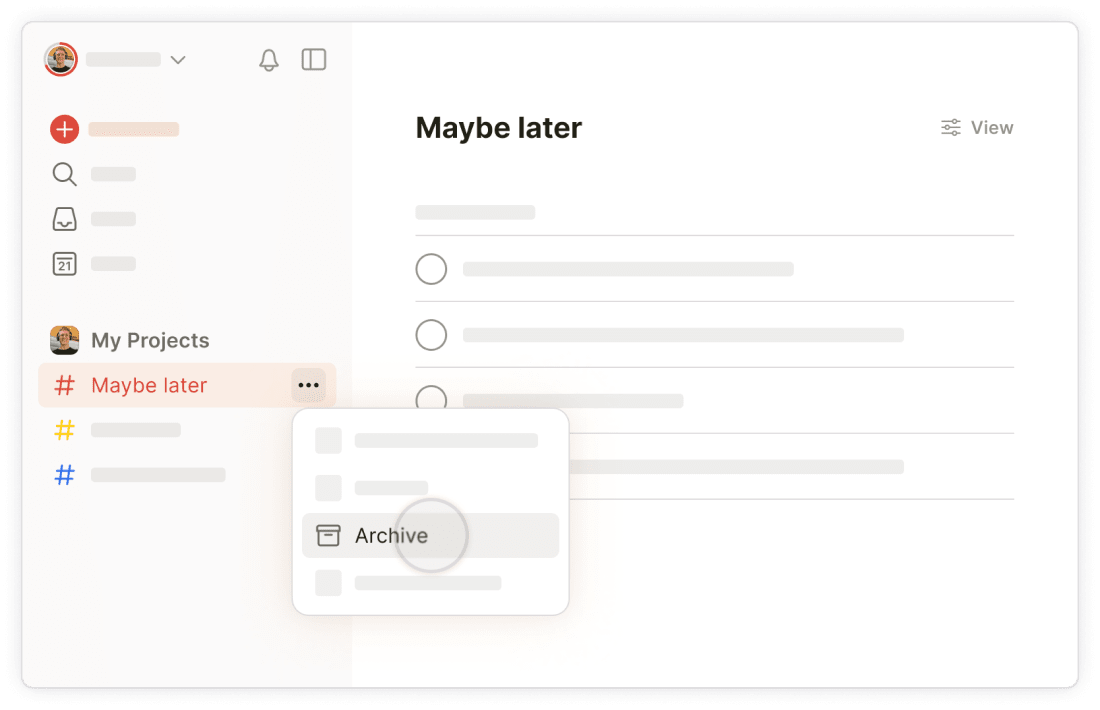 If you just can’t bring yourself to hit delete on a task and banish it from your life forever, you have the option to save it in a temporary project in Todoist. (Marie would strongly disapprove: “Storage is nothing but a cosmetic solution. You must begin by discarding!” But you should do what works best for you.)
