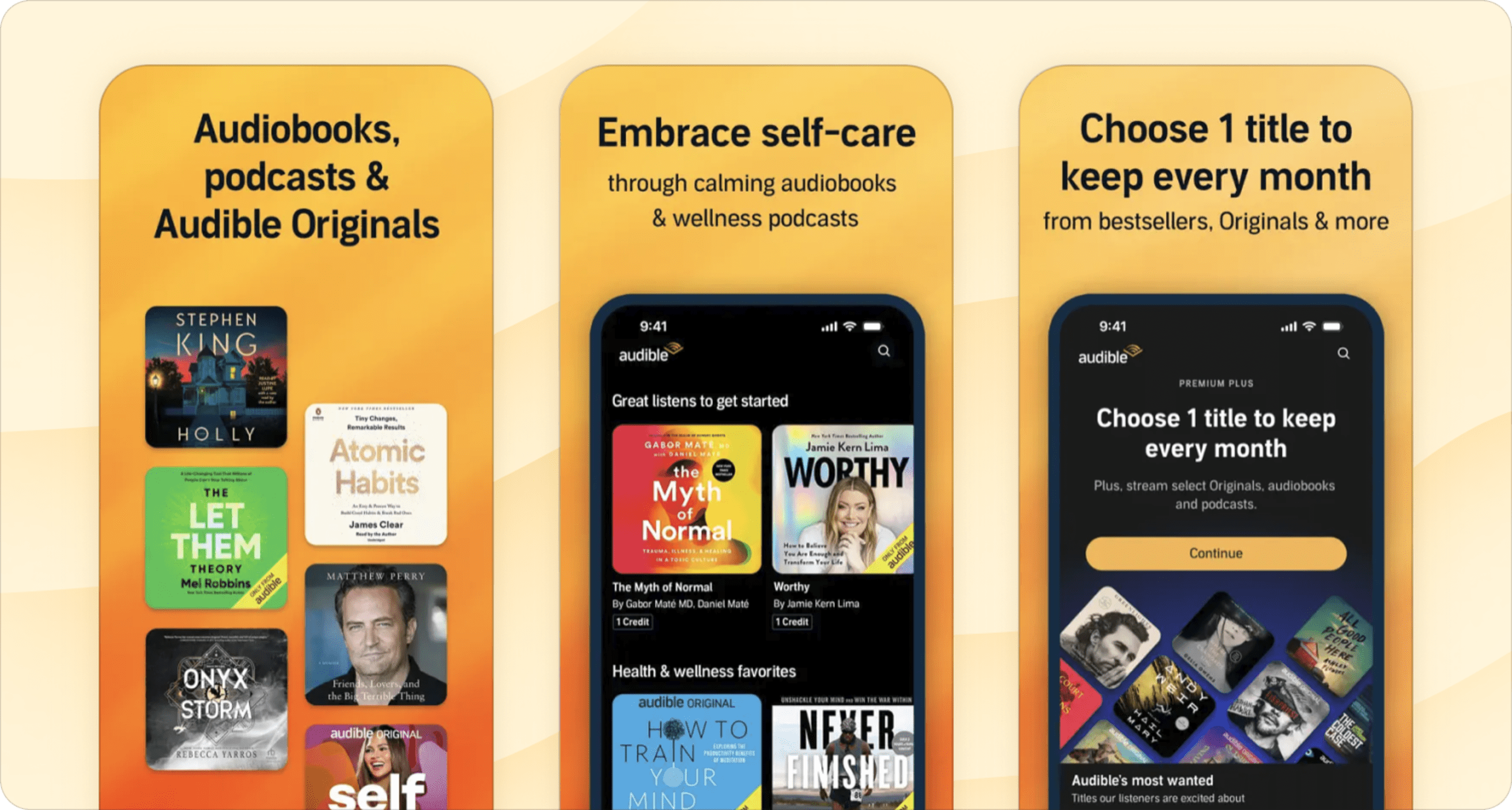Pricing: Listen to select audiobooks and podcasts with the plus plan ($7.95/month) or get one credit per month for any audiobook plus unlimited access to the plus catalog with the premium plus plan ($14.95/month). With the premium plus plan you also have the option to upgrade for more credits.