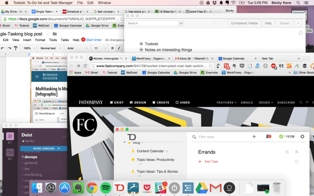 Now that I’ve told you to single-tab, I have to be honest. While I love the idea, I’ve never been able to get the habit to stick very well. I’ve decided to go with the perhaps less effective, but much more realistic (for me) strategy of using multiple desktops on my laptop to keep my tasks separated.