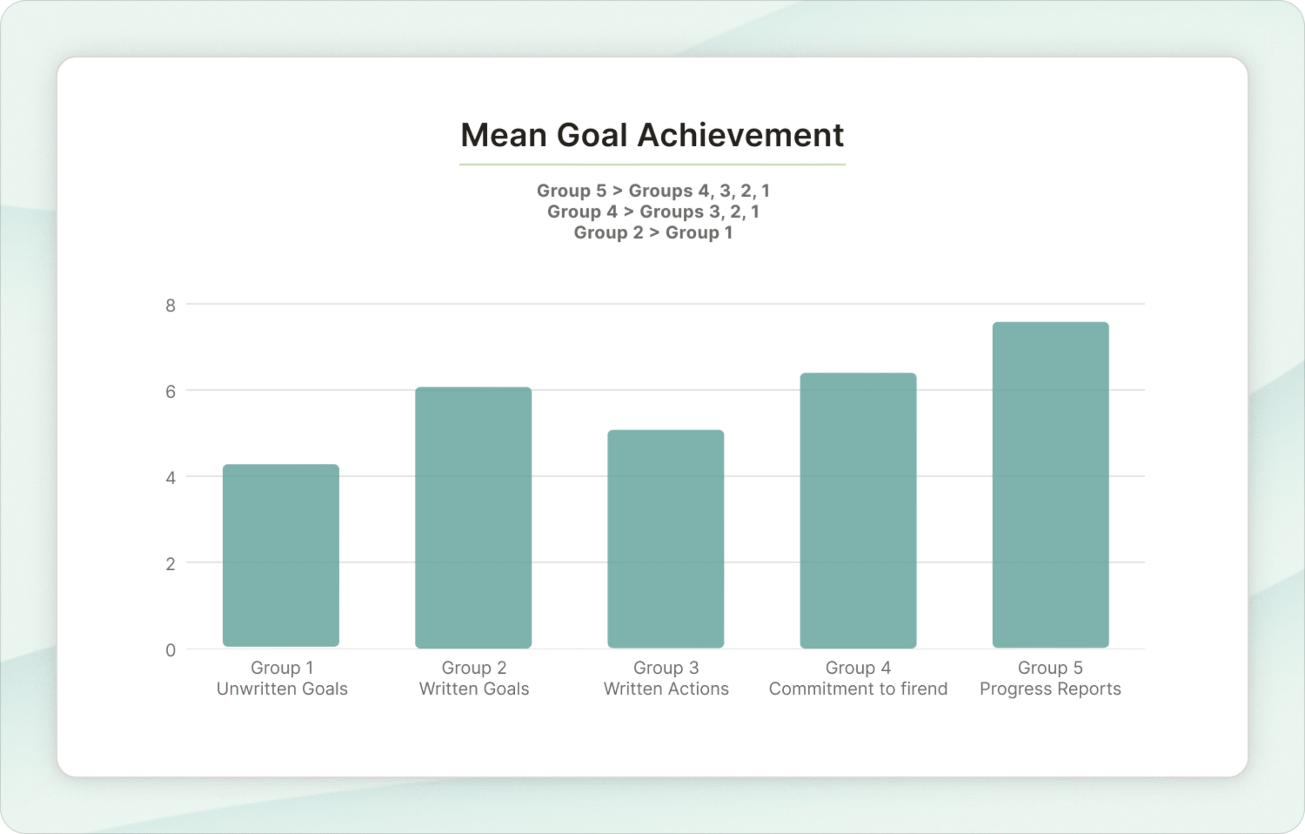 Group 5 was asked to do all the above and send weekly reports to a supportive friend