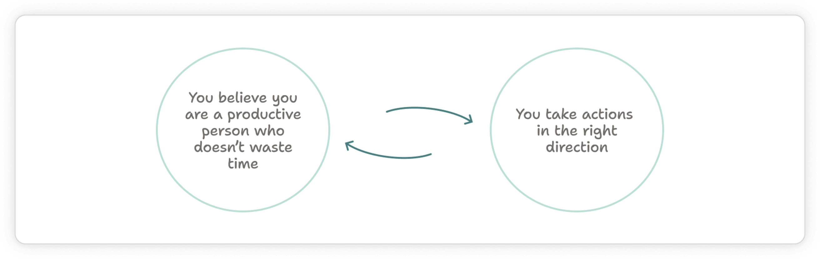 It’s hard mindset work. What makes it easier? Taking action. The less time you waste, the easier it gets to convince yourself that you’re a productive person. But you can also start to inculcate these beliefs in yourself early on and use identity shifts to affect your behavior.