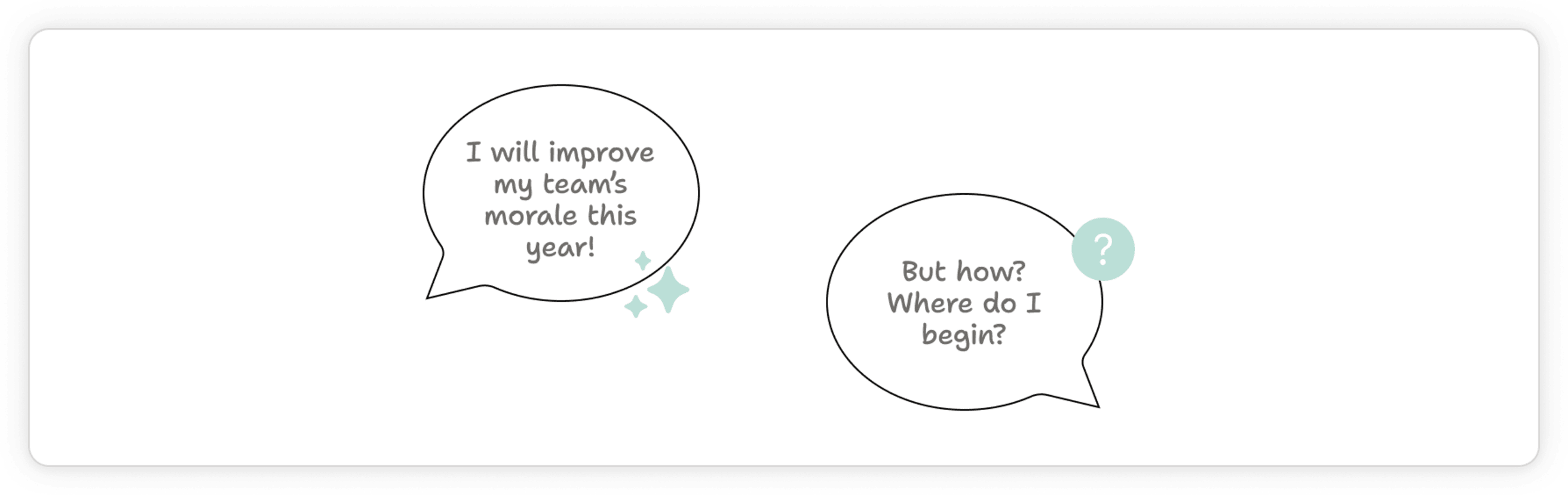 Sometimes, your new year goals stay just ‘goals’ because you didn’t convert them into an actionable plan. For example, “improving my team’s morale” is a good goal, but: