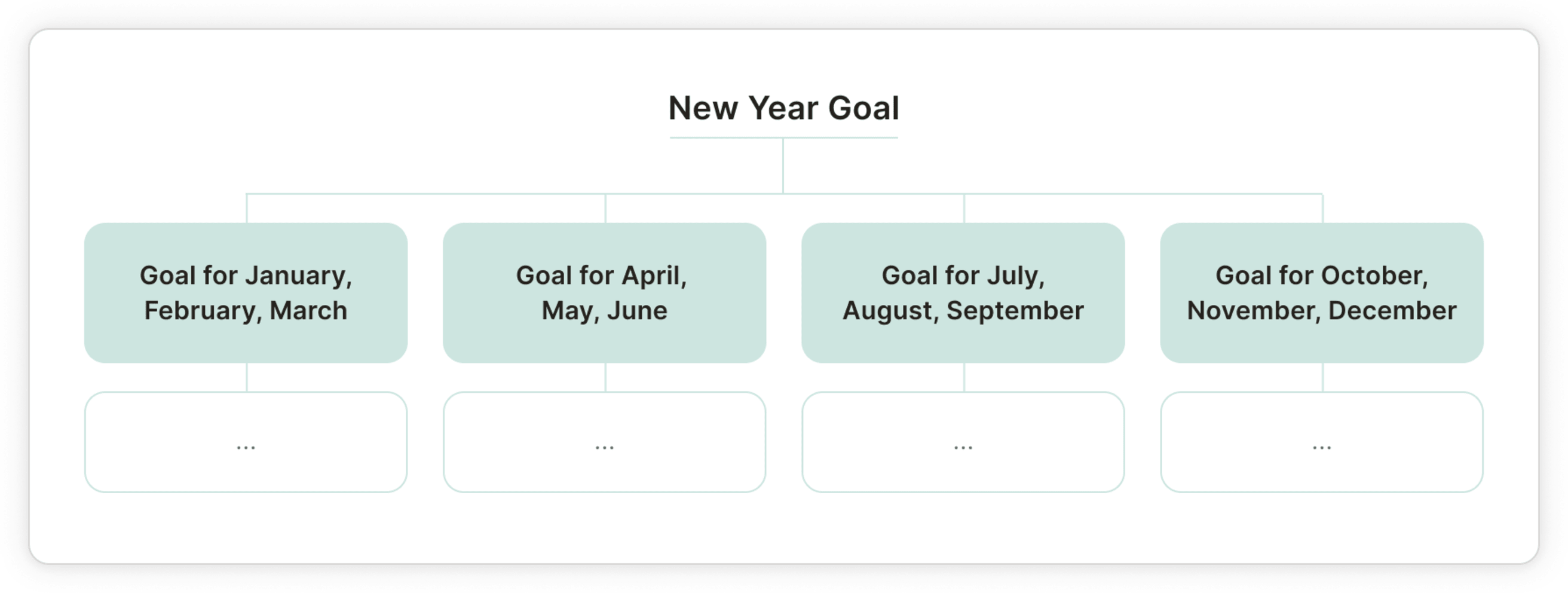 Many workplaces set annual targets and then divide them into quarterly OKRs. You should do the same with your new year’s resolutions. Why? Because it fuels the dopamine reward cycle: If you set a year-long goal, the end is too far in sight to nudge you to take action today. But the sense of urgency stays higher if you have a quarterly milestone.