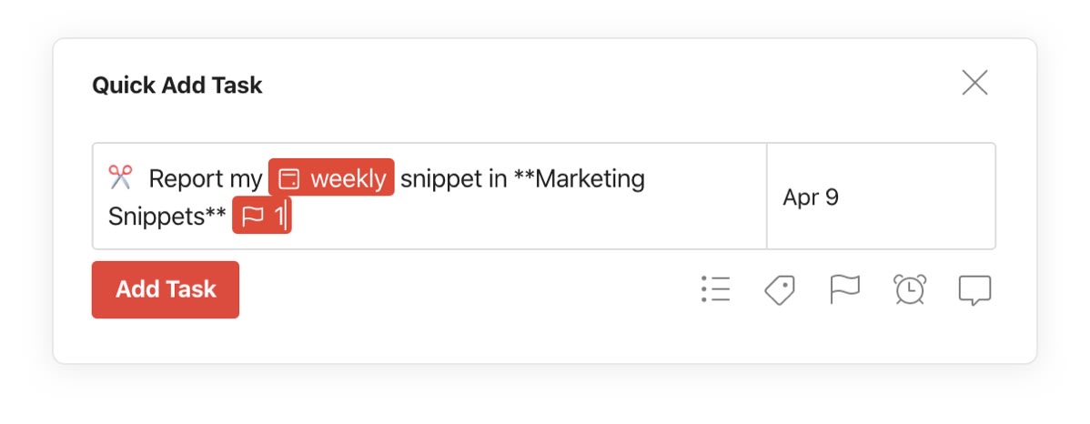 💡Tip: To add a task priority even faster, you can type p1, p2, or p3 right into the task field in Quick Add.