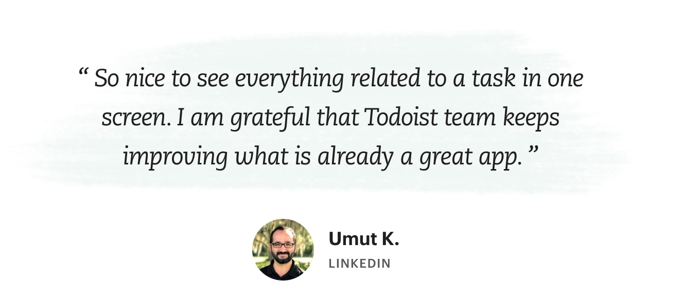 Weād love to hear how you use the new Task view, so share your workflows with us on Twitter @todoist or Instagram @todoistofficial.