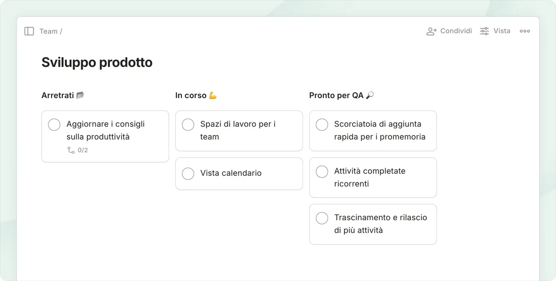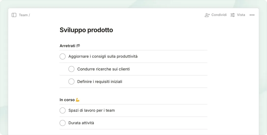 Fai spazio alle attività del tuo team