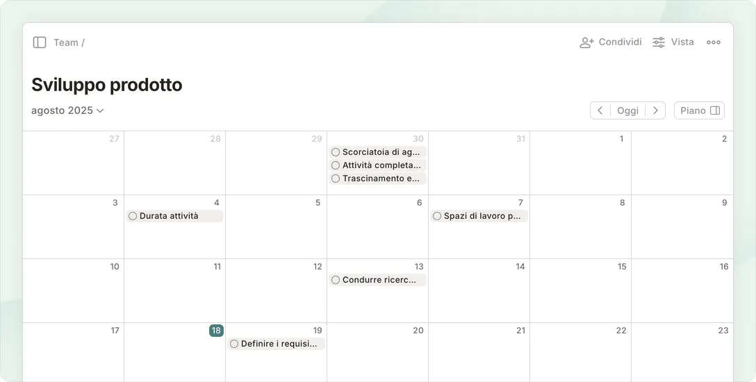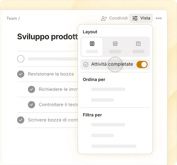Scegli tra layout a elenco, calendario o board Kanban per pianificare e monitorare facilmente anche i progetti più ambiziosi.