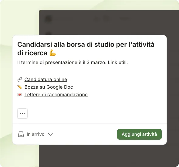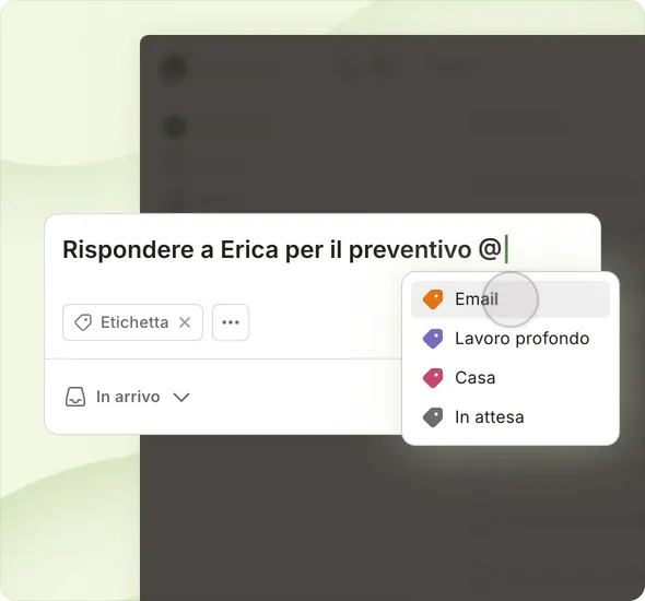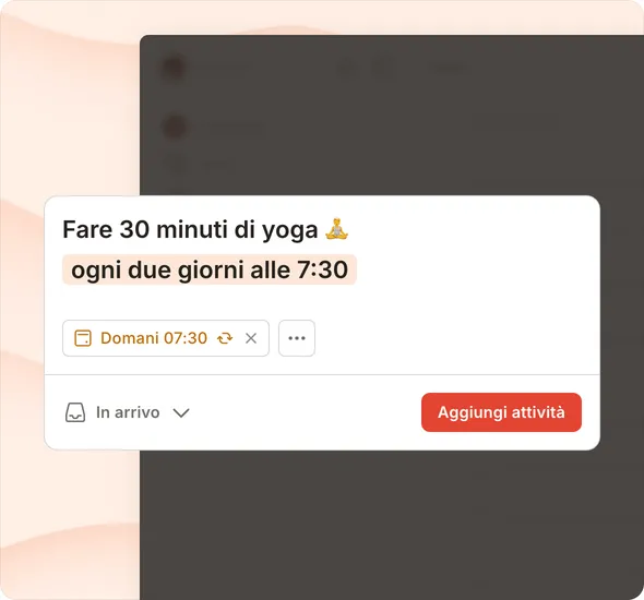 Abbiamo trascorso oltre un decennio a perfezionare il modo in cui le persone aggiungono attività su Todoist. Il nostro obiettivo è creare un task manager che funziona come un'estensione naturale della tua mente.