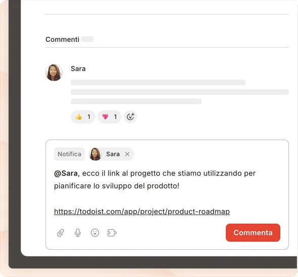 “Dopo aver scelto Todoist per tenere traccia delle mie attività personali, l'ho proposto al mio team per la gestione dei progetti. Ci piace molto il fatto che gli spazi di lavoro ci permettano di separare le attività e i progetti aziendali da quelli personali!”