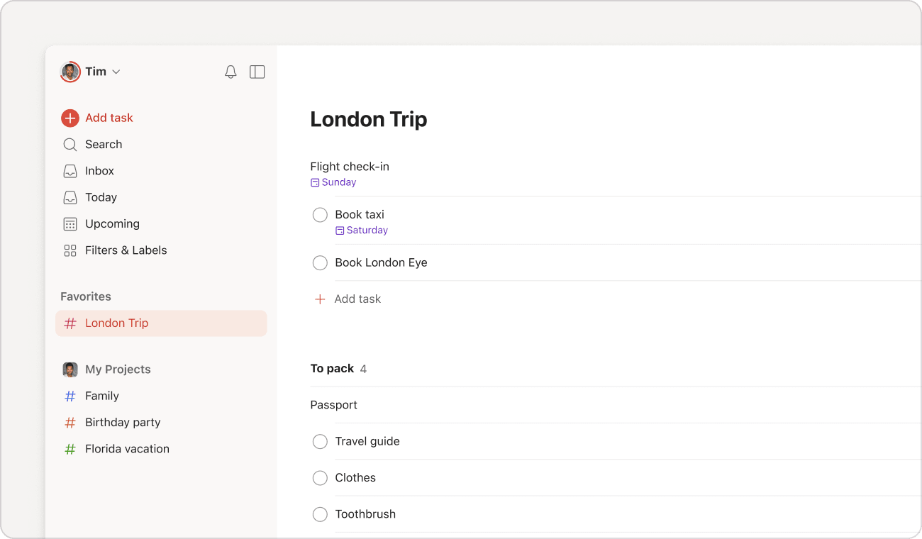 Per esempio, se vuoi creare un'attività non completabile chiamata "Fare il check-in del volo", digita * Fare il check-in del volo.