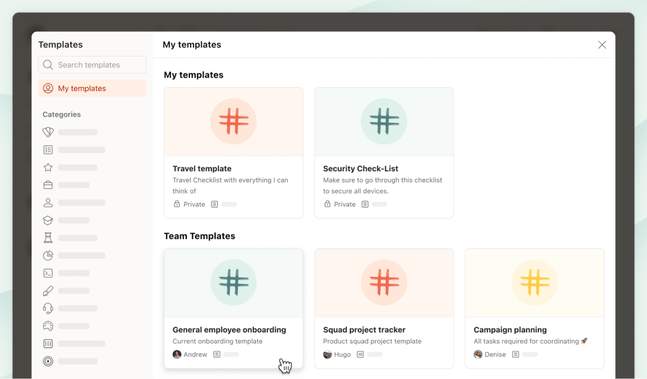 Con tutto ciò che abbiamo da fare, ripetere le stesse cose è una perdita di tempo. Che si tratti di lanciare un progetto rivoluzionario con il team o di testare un nuovo metodo di produttività, i modelli ti aiutano a metterti subito all'opera. E quest'anno li abbiamo rivoluzionati.