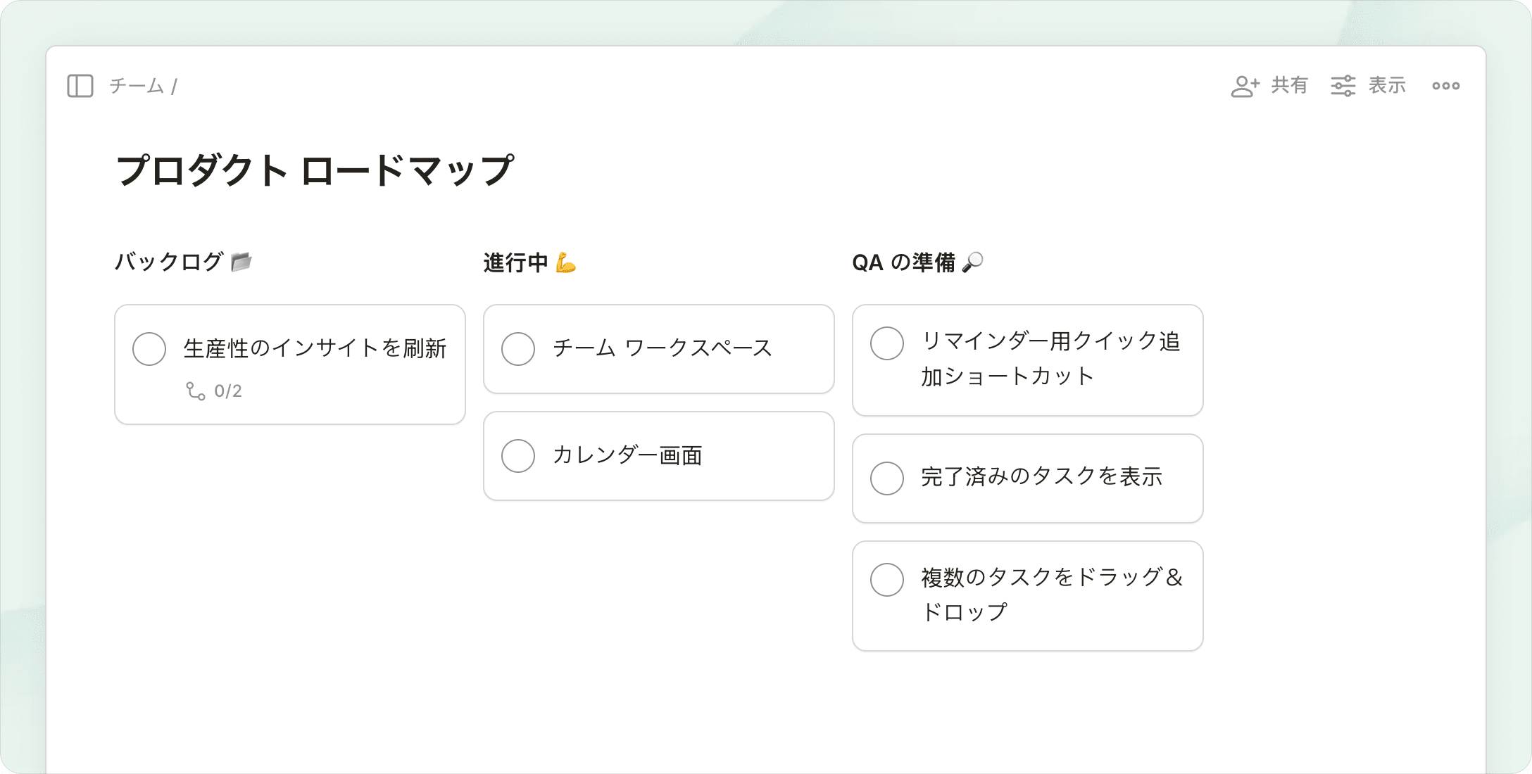 限りなく柔軟性が高い画面で、今必要なタスクを表示します。残りは後にとっておきましょう。