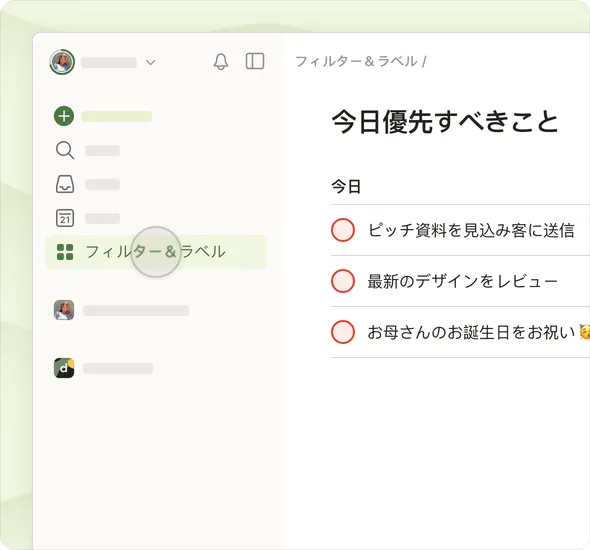 ミニマルなデザインにだまされないで – Todoist にはあらゆるワークフローの構築に必要なすべてのツールが備わっています。
