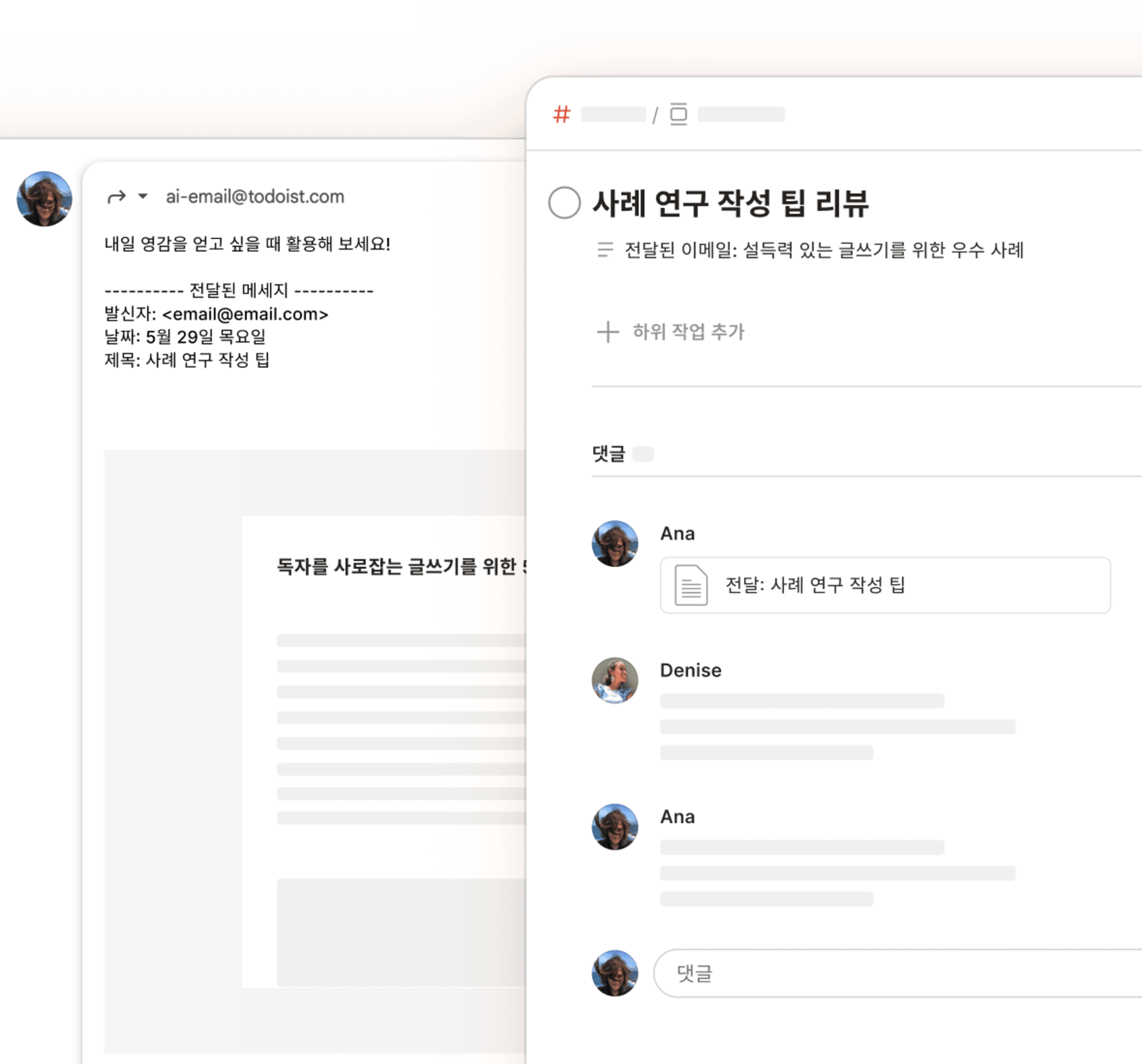 Todoist의 지능형 도구는 일상 워크플로에 자연스럽게 통합되어 필요할 때 필요한 곳에서 바로 지원을 제공합니다.