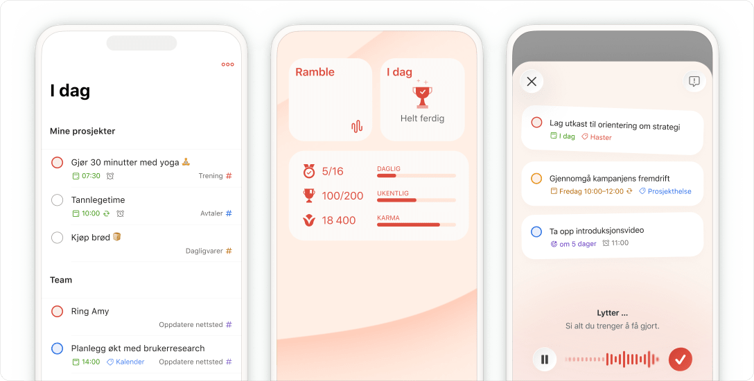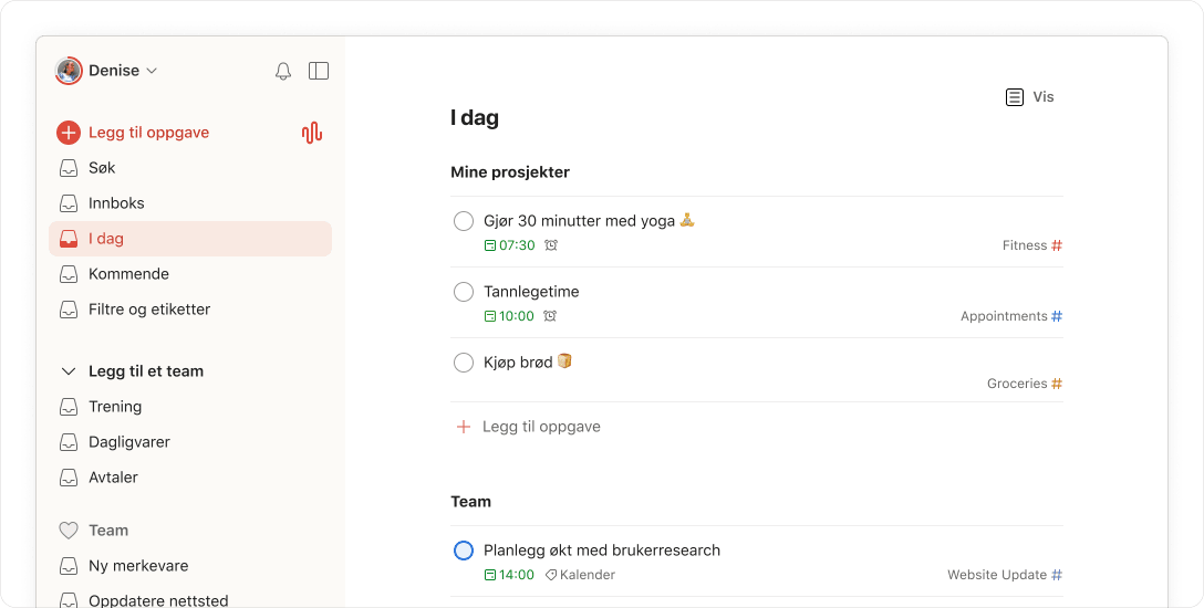 Vi bruker informasjonskapsler til å forbedre nettstedet vårt og avgjøre hvordan vi markedsfører Todoist. Velg innstillingene dine, så husker vi valget ditt.