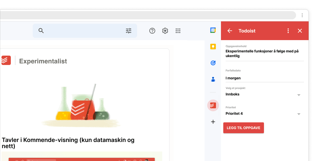 Last Todoist til Linux, Mac, Windows, iPhone, iPad, Android, Apple Watch og WearOS. Legg også til Todoist i nettleseren og e-postklienten.