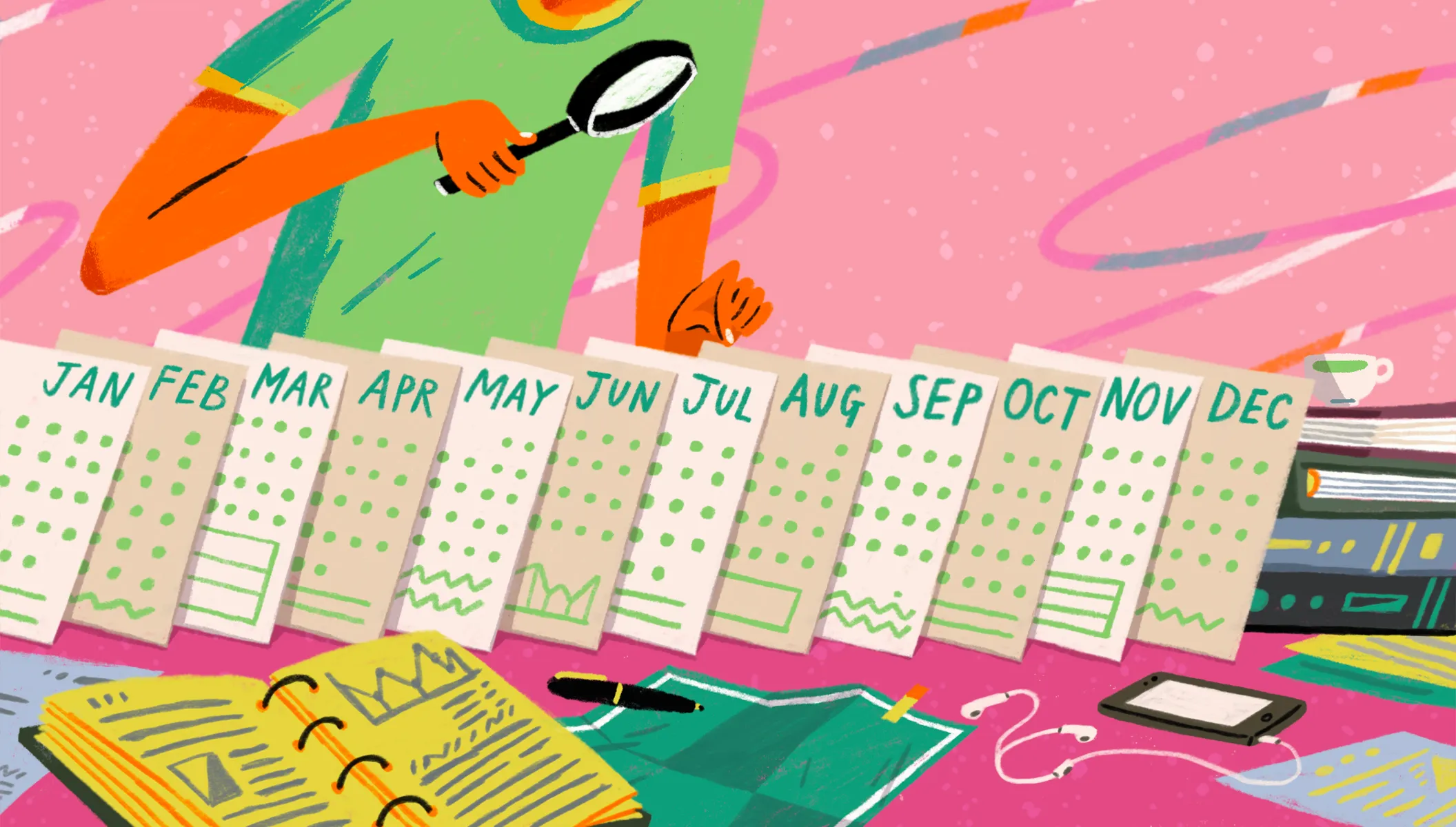 There’s no single right way to do an annual review. If you started the year with a set of concrete goals, you could review them one by one. If you’re a personal documentarian, you might review your year month-by-month, flipping chronologically through journal entries, notes, and snapshots on your camera roll. If you’re a master of the quantified self method, looking through your recorded numbers is a great strategy.