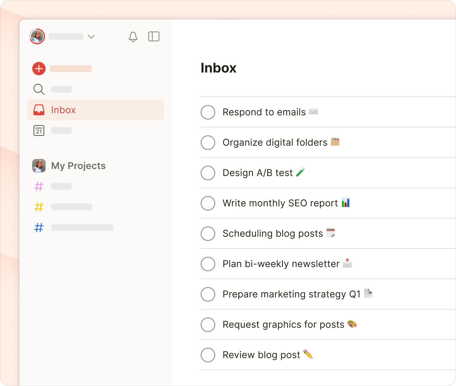 Add all of the tasks you can think of to your Inbox. Donât think about which ones are more important or urgent yet. The idea of this step is to have all of your tasks in your inbox to organize them.