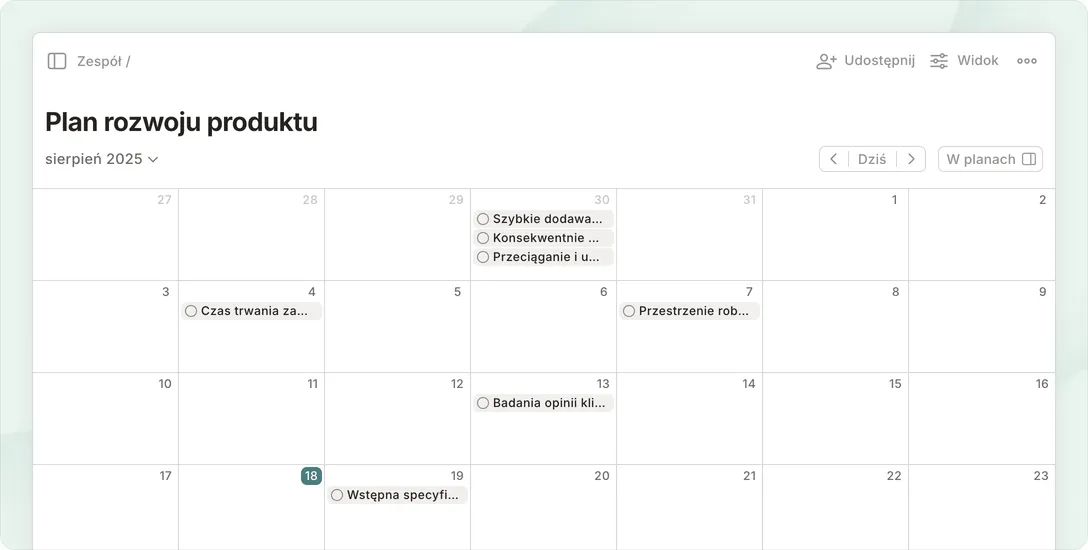 Wybierz widok listy, kalendarza lub tablicy, aby łatwiej zaplanować i zrealizować nawet najbardziej ambitne projekty.