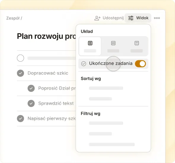 Nieskończona elastyczność sposobu wyświetlania zadań. Sprawdź, co jest najważniejsze – resztę zostaw na później.