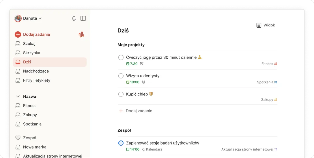 Todoist to również przestrzeń na zadania Twojego zespołu