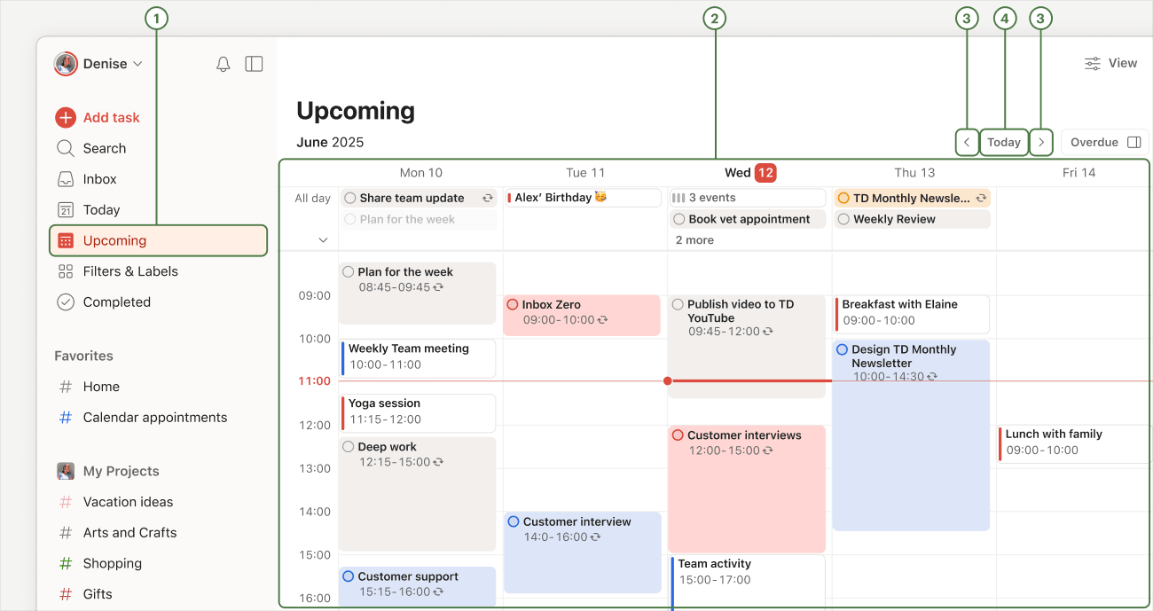 Ta opcja jest szczególnie przydatna, aby nie pogubić się w nadchodzących spotkaniach i dzięki temu lepiej planować tydzień. Może okazać się szczególnie przydatna, jeśli włączyłeś(-aś) synchronizację Todoist ze swoim kalendarzem.