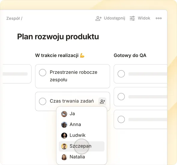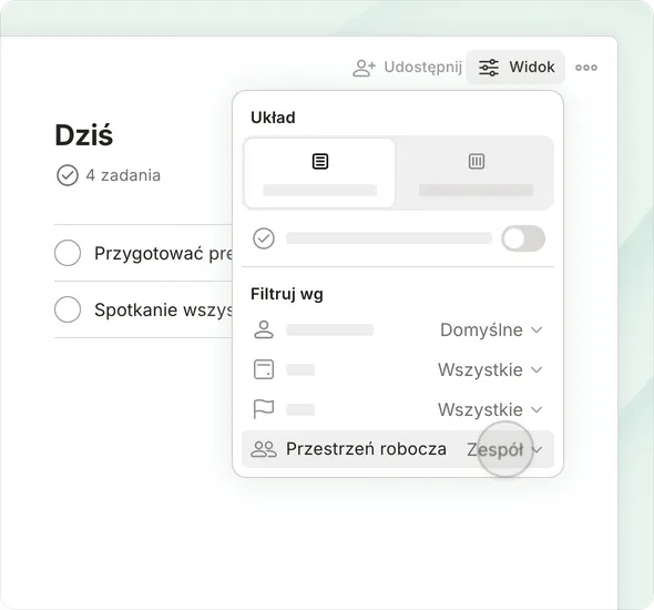 Zmieniaj widoki przy pomocy jednego kliknięcia, aby zobaczyć dzisiejsze priorytety, terminy projektów, nadchodzące zadania lub własne widoki filtra.