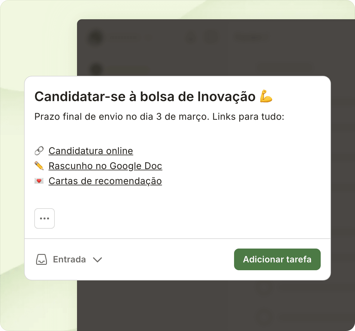 Passamos mais de uma década refinando a forma como as pessoas adicionam tarefas no Todoist. Nossa meta? Transformar as to do lists em uma extensão natural da sua mente.