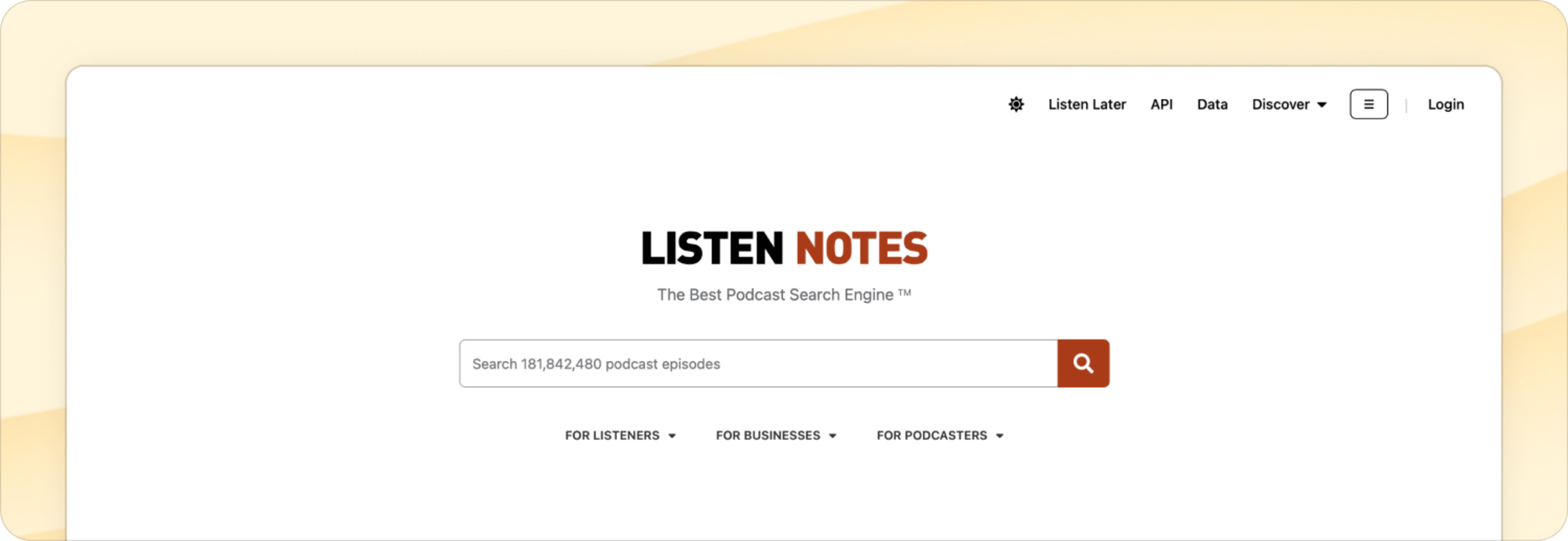 Listen Notes is the best podcast search engine — like Google but for podcasts. The app catalogs millions of episodes across different podcast platforms to create a personalized database for you. It helps you both discover and monitor your listening habits.