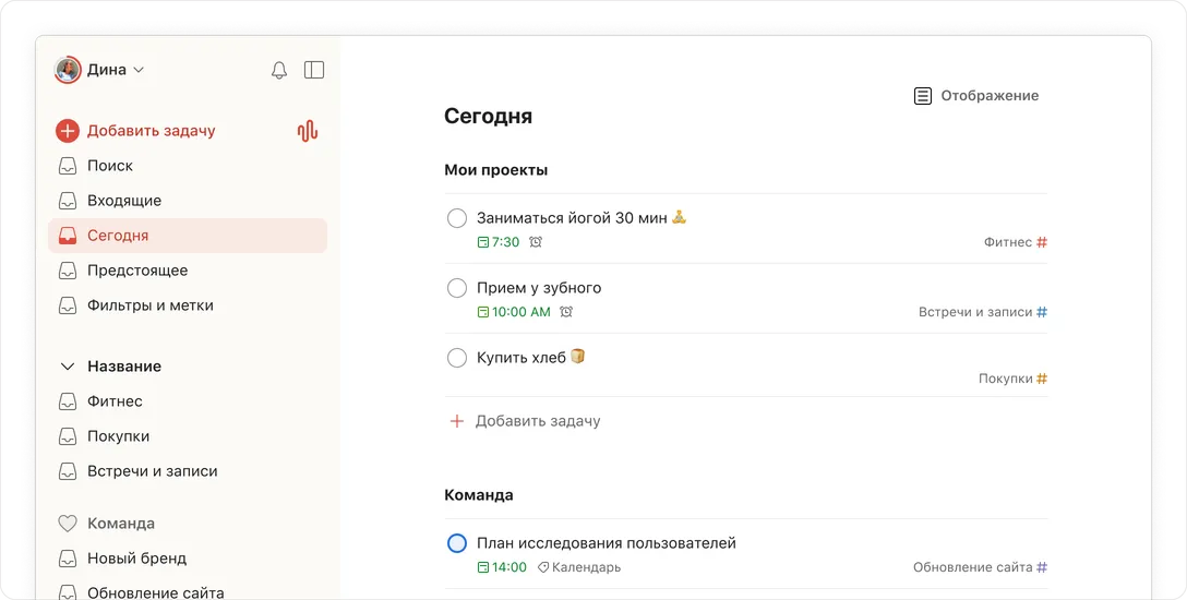 Мы используем файлы cookie, чтобы улучшить работу сайта и маркетинговые материалы Todoist. Укажите свои предпочтения, и мы запомним ваш выбор.