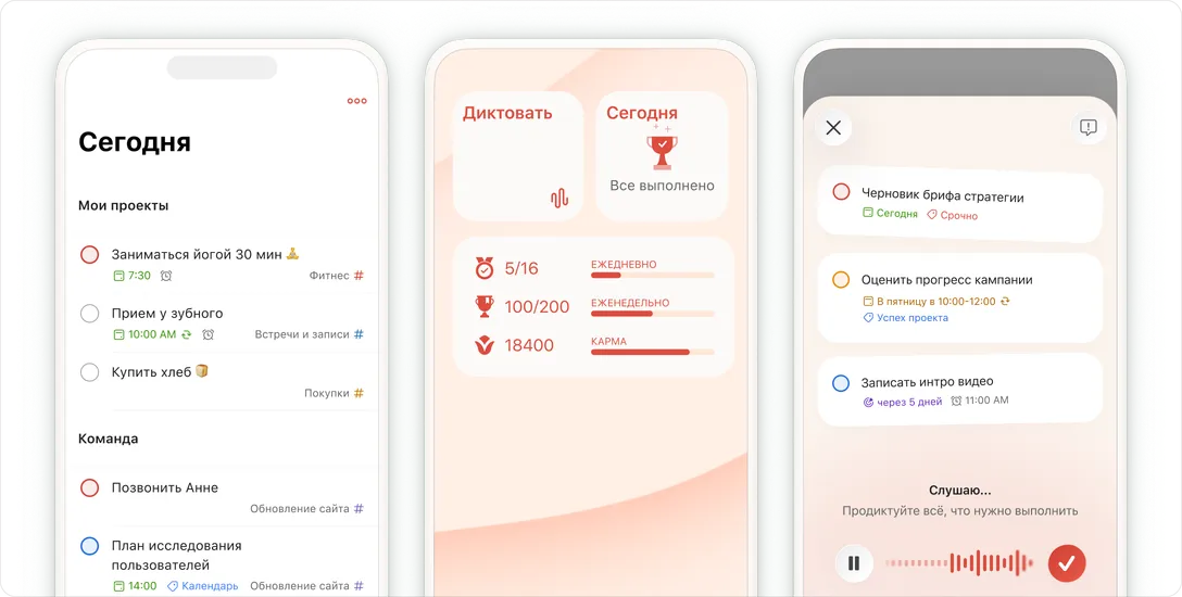 Мы используем файлы cookie, чтобы улучшить работу сайта и маркетинговые материалы Todoist. Укажите свои предпочтения, и мы запомним ваш выбор.