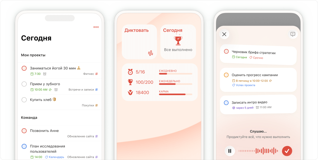 Мы используем файлы cookie, чтобы улучшить работу сайта и маркетинговые материалы Todoist. Укажите свои предпочтения, и мы запомним ваш выбор.