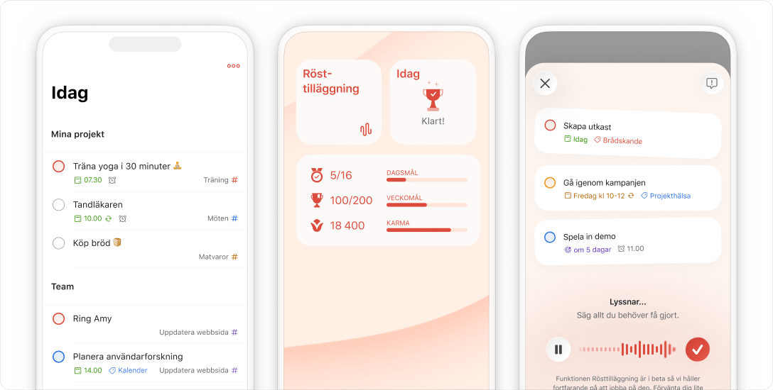 Vi använder cookies för att förbättra vår webbsida och hur vi marknadsför Todoist. Välj hur du vill ha det, så kommer vi ihåg ditt val.