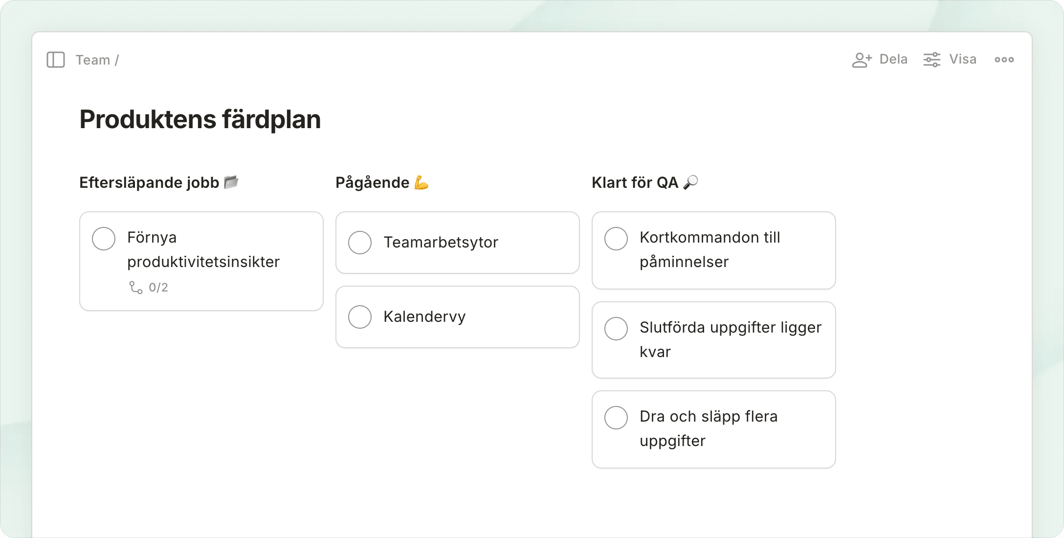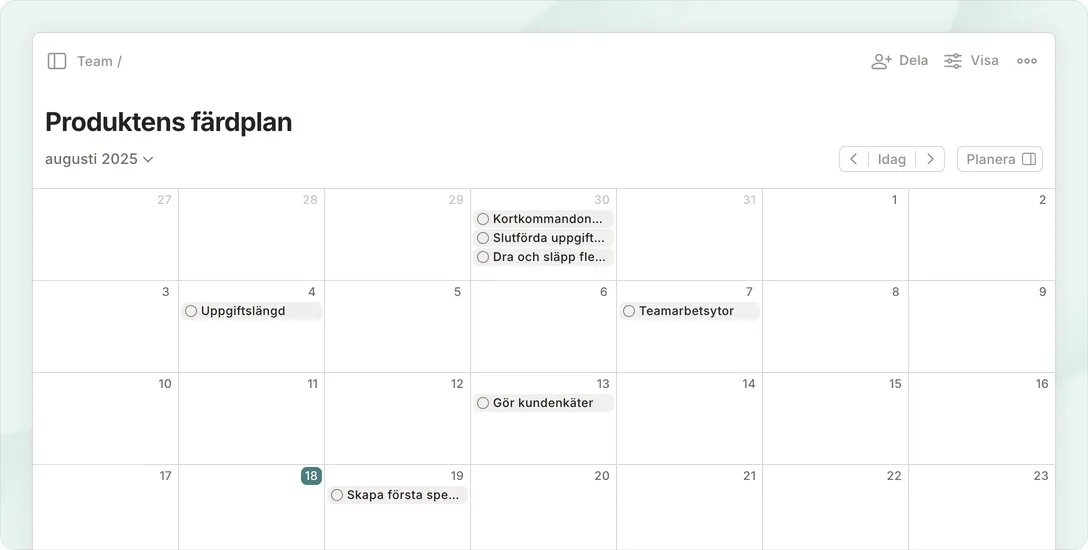 Växla mellan lista, kalender eller anslagstavla för att enkelt kunna planera och följa upp även dina mest ambitiösa projekt.