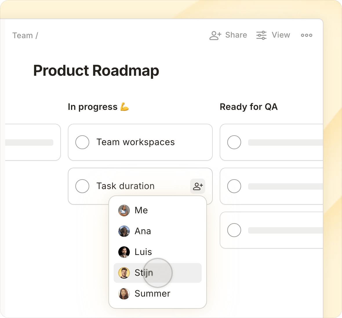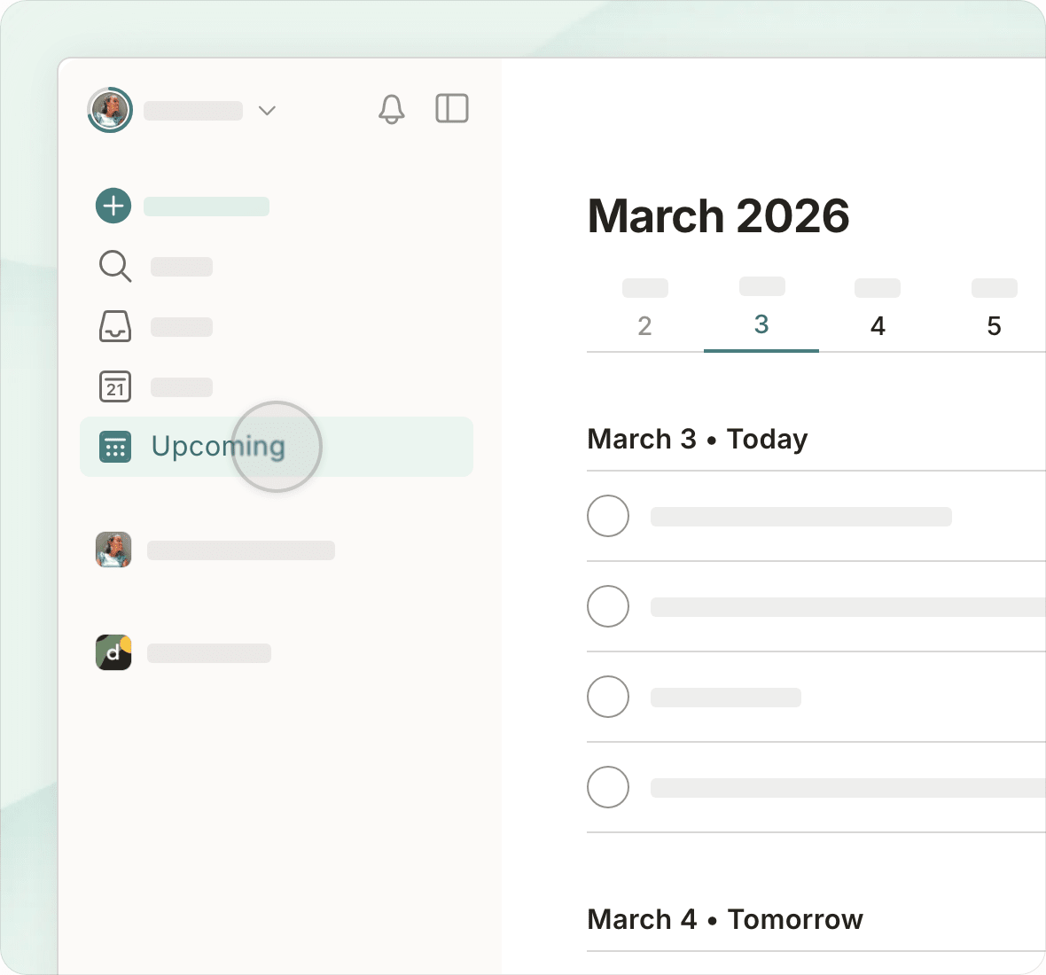 Switch views with a single tap and see today's priorities, project deadlines, upcoming work, or custom filtered views.
