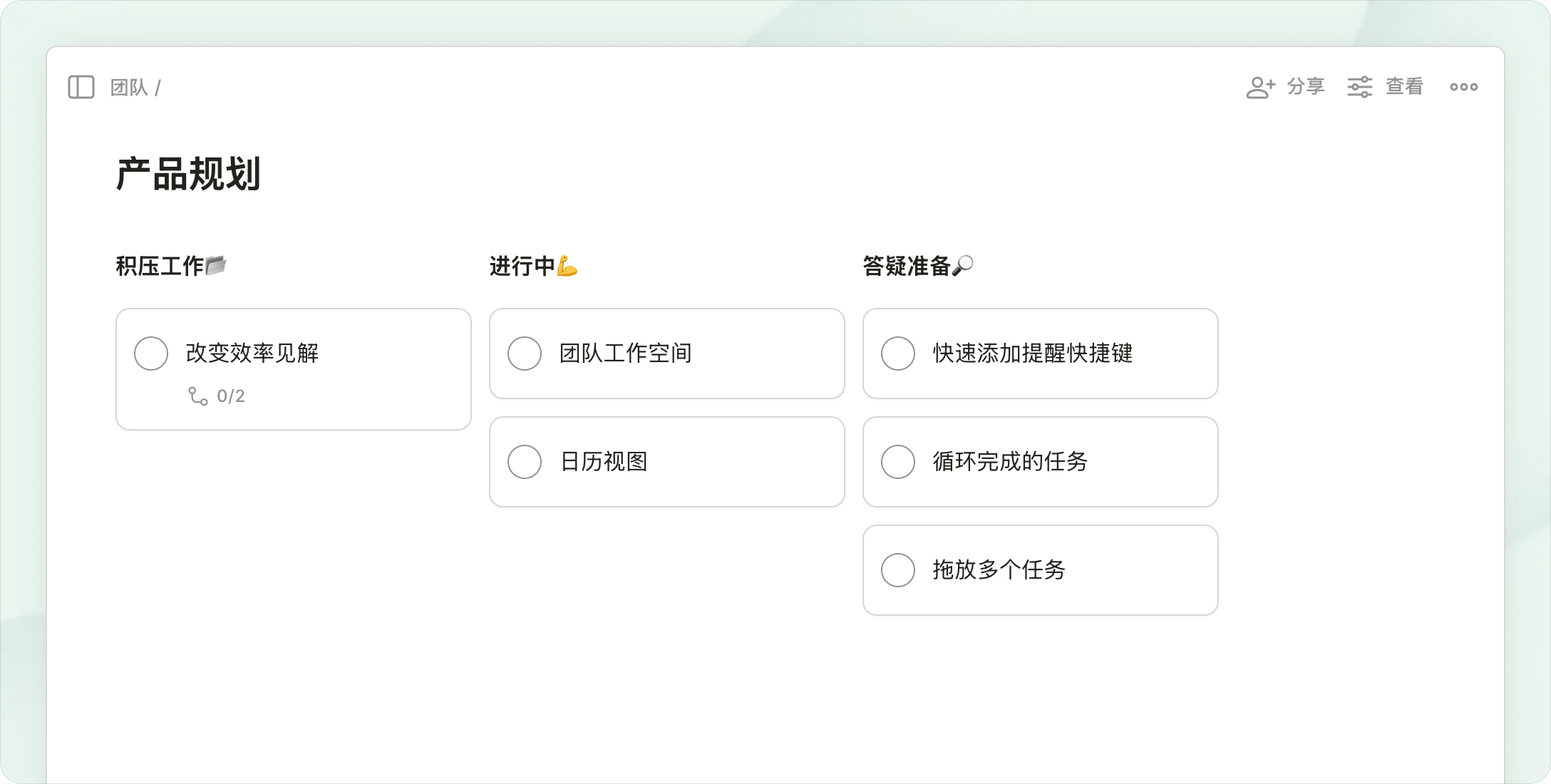 切换列表、日历或看板视图来轻松计划和跟进您最重要的项目。