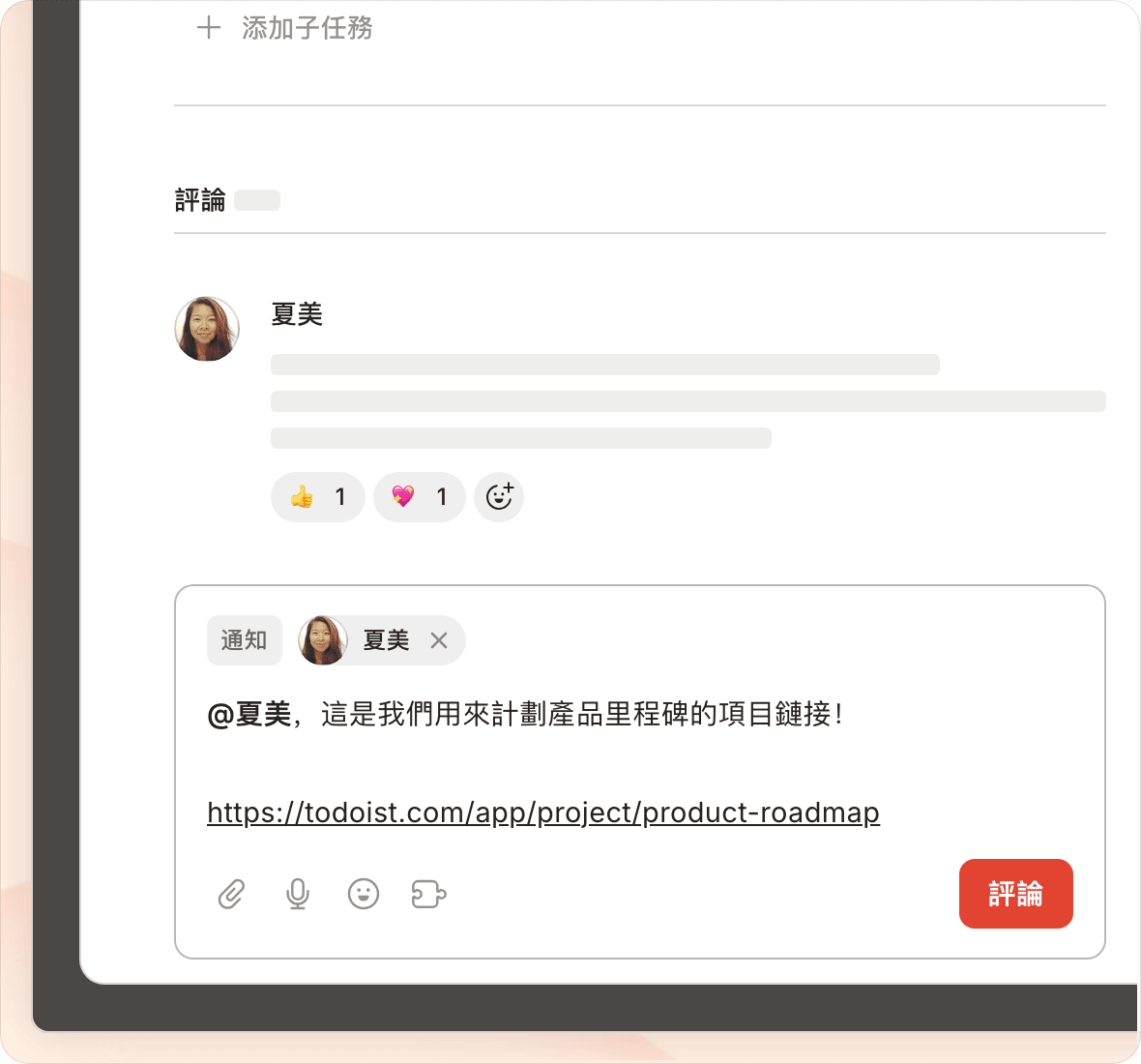 「在我使用Todoist之後,我把它介紹給了我的團隊用於項目管理。我們非常喜歡可以將我們的工作任務和項目與個人區分的工作空間!」
