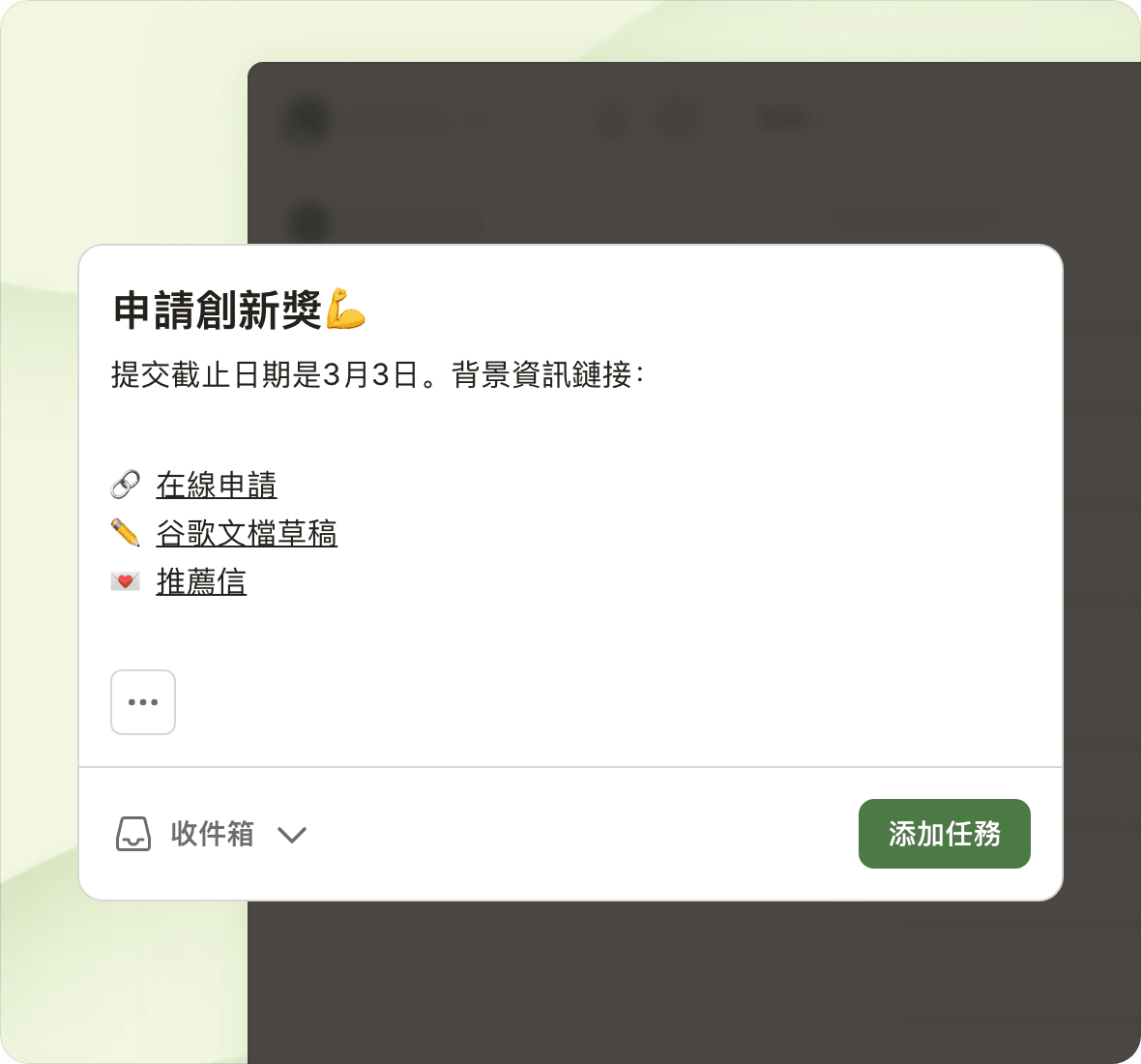 我們花了近十年的時間來優化人們將任務添加到Todoist中的體驗。我們的目標?讓任務清單變成您大腦本能的拓展。